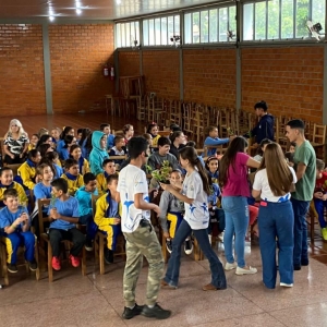 "No desenvolvimento das atividades, optamos em apresentar juntamente com o grito de guerra, nosso lema e causa.