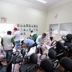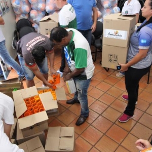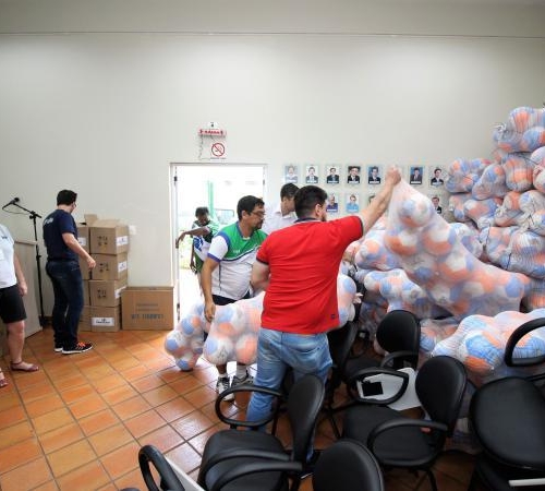 Os gestores de esporte receberam o material específico (bolas oficiais para as modalidades solicitadas), 1600 bolas para brindes, 1600 bonés, 800 camisetas e 1600 copos. A estrutura de apoio com arquibancadas e pirâmides para área coberta, também serão disponibilizados.