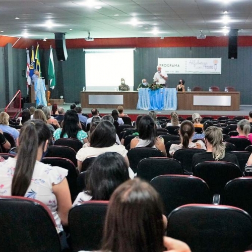 Prefeitos, secretários de educação e coordenadores pedagógicos participaram nesta segunda-feira (22) do lançamento e apresentação do Programa Alfabetiza (com)Texto. O evento ocorreu em Guaíra. O Programa é uma ação da Universidade Estadual de Maringá (UEM), por intermédio da Pró-reitoria de Extensão e Cultura e da Coordenadoria de Apoio à Educação Básica, como uma das ações do "Grupo Multidisciplinar de Assessoria às Secretarias de Educação do Estado do Paraná".
