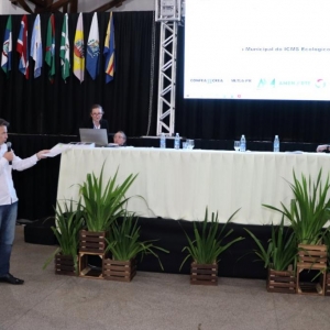Na pauta esteve a apresentação a respeito dos potenciais para gerar recursos por intermédio do ICMS Ecológico, instrumento de política pública que trata do repasse financeiro aos municípios que abrigam em seus territórios unidades de conservação ou mananciais. Dois municípios receberam o Plano Municipal de ICMS Ecológico (PMIC), Santa Helena e Guaíra.