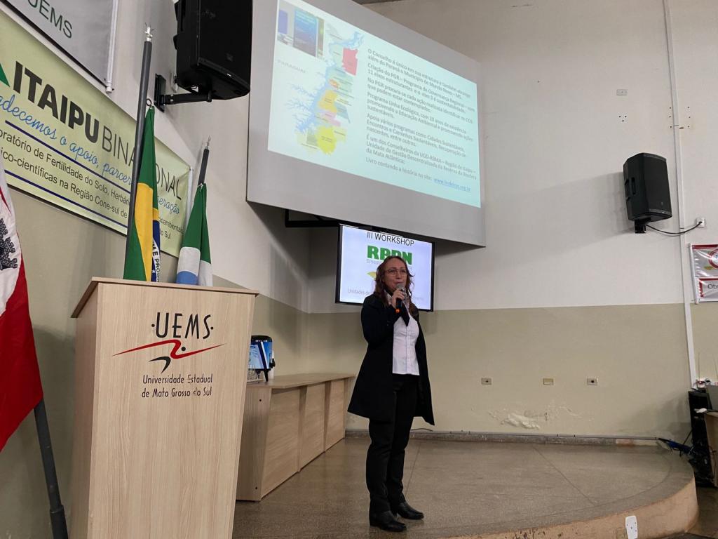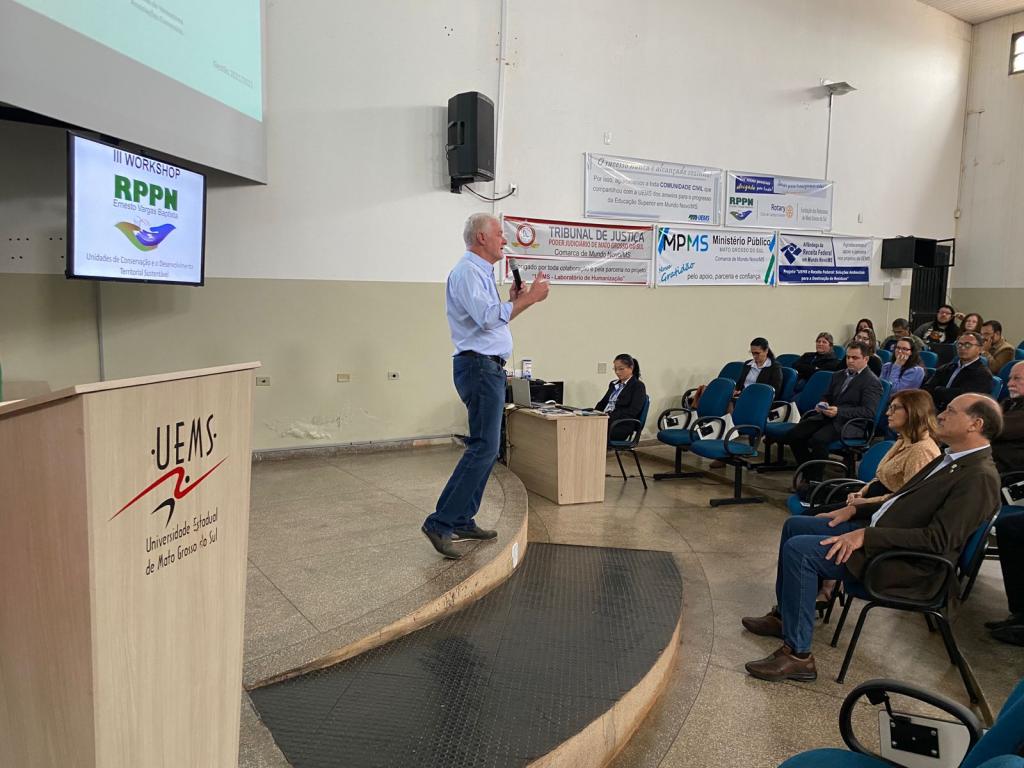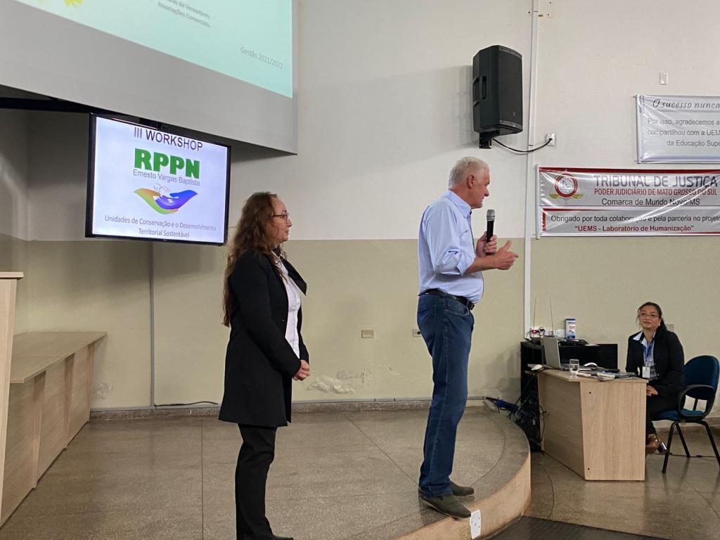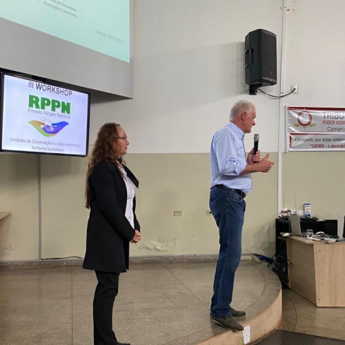 O prefeito de Guaíra, presidente do Conselho de Desenvolvimento dos Municípios Lindeiros ao Lago de Itaipu, Heraldo Trento, e a diretora técnica, Sandra Finkler, participaram nesta sexta-feira (05), do III Workshop RPPN Ernesto Vargas Baptista, Unidades de Conservação e o Desenvolvimento Territorial Sustentável, da Universidade Estadual de Mato Grosso do Sul (UEMS). No evento foram apresentadas ações, projetos, parcerias e iniciativas do Conselho dos Lindeiros.