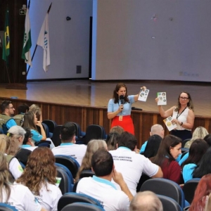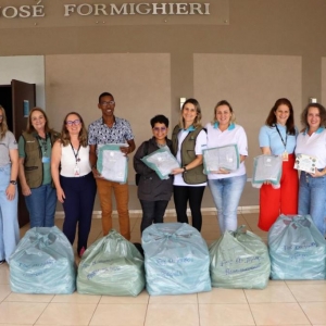 Outro ponto forte da reunião foi a entrega de 1152 kits para os Catadores dos 55 municípios compostos por uma calça, uma camiseta e um avental. Os itens servirão para serem utilizados no dia a dia de trabalho dos catadores e é uma ação integrada com a Divisão de Ação Ambiental da Itaipu Binacional. Na ocasião também foram entregues por meio do Convênio Educação Ambiental Ciência e Sustentabilidade II, um exemplar do kit de Guias Pedagógicos da Itaipu Binacional. Nas semanas seguintes serão distribuídos aproximadamente 5000 kits pela Itaipu Binacional e mais de 60% dos professores da rede municipal receberão os guias por intermédio da Secretaria de Educação.