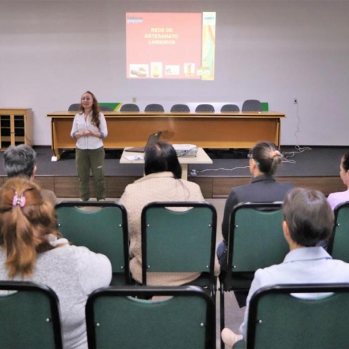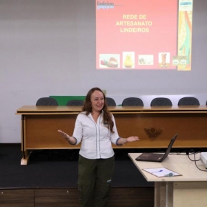 A palestra é proferida pela diretora técnica do Conselho dos Lindeiros, Sandra Finkler e consiste em explicar o que é a Rede de Artesanato, porque foi formada e quem pode participar.