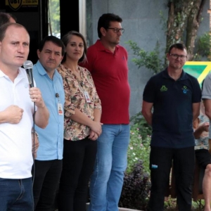 Também compuseram a frente de honra, além do próprio fotógrafo Edino Krug, Emanuela Regina dos Santos e Mauri Schneider, gestores do convênio Linha Ecológica, vereador Paulo Zembrzuski e o gerente de Cultura da prefeitura local, Edson Vieira.