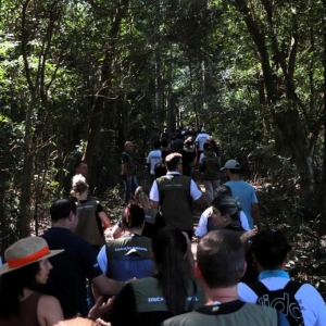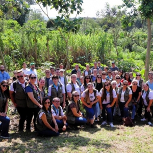 Durante a visita ao Sítio Ecos da Agrofloresta, em São Roque – Marechal Cândido Rondon, os participantes puderam conhecer práticas agroecológicas e de saneamento ecológico, bem como plantas alimentícias não convencionais (Pancs).