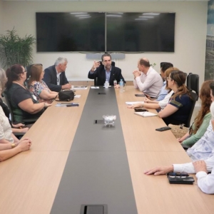 Nesta quinta-feira (24), foi realizada uma reunião entre o diretor-geral brasileiro da Itaipu Binacional, Enio Verri, juntamente com o diretor de Coordenação da Itaipu, Carlos Carboni, equipe técnica da entidade, presidente do Conselho de Desenvolvimento dos Municípios Lindeiros ao Lago de Itaipu, Evandro Grade (Zado), vice-presidente, Antônio França Benjamin, juntamente com a diretoria e representantes de professores para discutir a continuidade do projeto “Mais Ideb nos Municípios Lindeiros”.