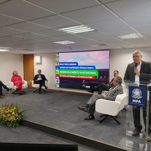 Na última quinta-feira (05/12), a equipe técnica da AMUSUH participou do evento de formalização de um acordo de cooperação técnica (ACT) entre o Ministério da Pesca e Aquicultura (MPA) e a Itaipu Binacional no auditório do órgão federal, no Setor de Indústrias (SIA), em Brasília (DF), para promover a pesca artesanal e a aquicultura sustentável na grande área de influência da hidroelétrica. A AMUSUH e o Conselho de Desenvolvimento dos Municípios Lindeiros ao Lago de Itaipu foram representados no encontro pela secretária executiva da Associação, Terezinha Sperandio, e pelo assessor executivo, Arthur Kunz Ferreira.