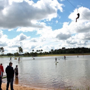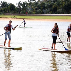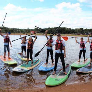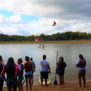 Os jovens também tiveram a oportunidade de participar de passeios com pedalinhos, travessia da área de banho da conhecida ‘praia nova’ pela tirolesa e fizeram atividades de stand up paddle.