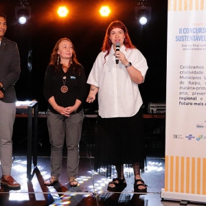 Na categoria “Criação de artesanato sustentável, utilizando materiais recicláveis”, a vencedora foi Eduarda Maize Weber, com a peça Lindeiros. Ela afirmou que a proposta a motivou a explorar novas possibilidades. “É muito mais valioso quando precisamos pensar fora da caixa. Percebi que consigo fazer mais do que estou acostumada, e já tenho novas ideias para desenvolver”, disse.